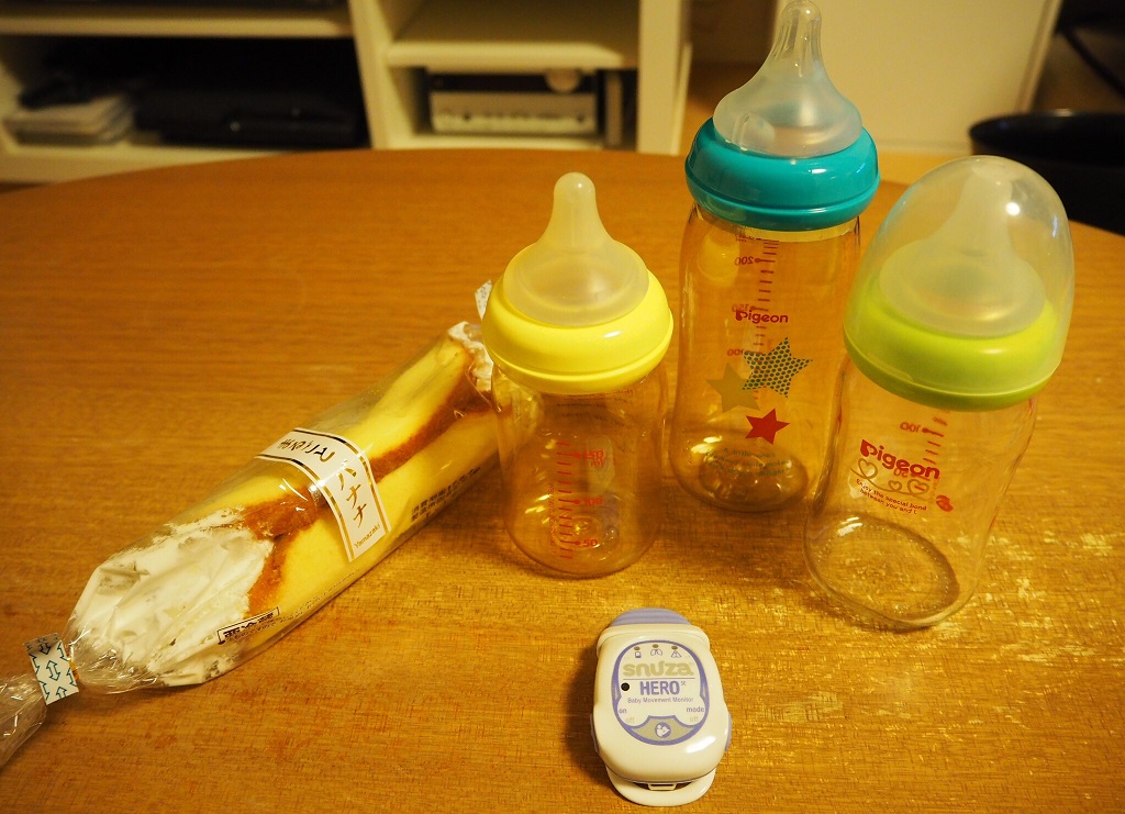 今回は、妻の母乳は頼らなくても大丈夫なように、哺乳瓶は余裕を持って3本用意しました。息子がいつも通り3時間睡眠を繰り返してくれれば2本もあれば十分朝を迎えられます。