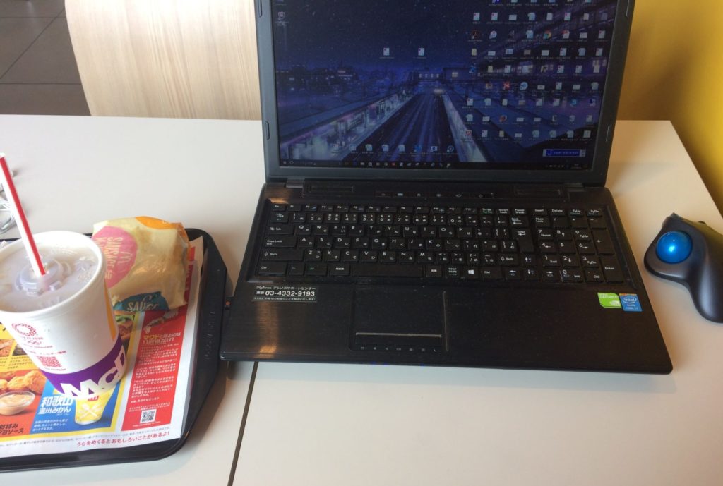 朝マックを食べにマックへ行きました。パソコンを持って。